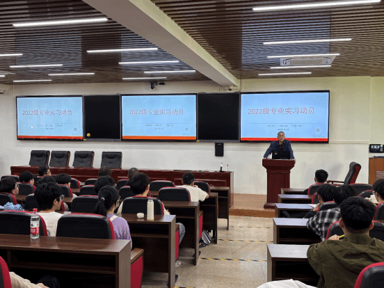 开始,沈飞副院长就专业实习的意义进行了深入讲解。他指出,专业实习不仅是人才培养方案中的重要组成部分,更是同学们从校园迈向职场的关键桥梁。通过专业实习,同学们可以拓宽专业视野,提升个人修养,并在实践中锤炼观察能力、分析能力与思辨能力,进而培养创造性思维。沈副院长特别强调,同学们应珍惜这一宝贵的学习机会,积极投入其中,同时保持团队凝聚力,做到团结协作,共同成长。