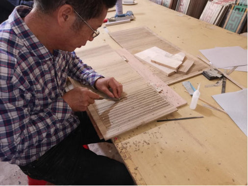 图七 广东纪传英古建筑营造有限公司工匠师傅现场制作