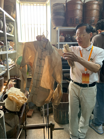 实习首站,师生们来到耀华里——中国人民解放军闽粤赣边纵队二支五团成立旧址。在“老物件”收藏人黄佳伟先生的讲解下,大家近距离观摩了千余件历史文物,从生活用具到军事装备,每一件都承载着厚重的历史记忆。其中,一件清朝时期的粗麻衣裳尤为引人注目,它不仅展现了百年前客家女子的生活风貌,更成为大罗村历史变迁的生动见证。学生们通过触摸历史遗存,深刻感受到革命先辈们的奋斗精神。