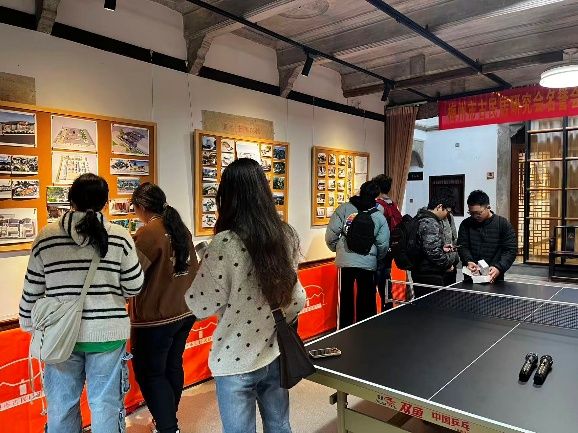 据介绍,玉庭楼主楼以三合土夯筑,二楼楼面采用德国进口钢筋水泥浇筑,工艺精湛,历经百年仍基础坚实。但受历史变迁影响,围龙部分被拆,长期缺乏管护导致建筑破败严重,外墙污损、门窗毁坏、横屋倒塌过半,室内地面塌陷、屋面漏水、木构霉变蛀蚀等问题突出。为让古建“活起来”,修缮团队秉持“活化不是颠覆性改造,而是功能置换与空间重组”的核心理念,创新破解多重难题:空间布局上,封平两个天井并采用钢结构玻璃屋面打造阳光房,贯通三堂并坚守 “四水归堂”传统,横屋重建后规划为公共卫生间、多功能展厅等现代空间,新增市政道路衔接华建市场;屋面修复中,采用“小青瓦 + 金属板 + 木质桑拿板” 三层结构,既保留传统风貌又根治漏雨隐患,新建横屋则搭配镀锌钢结构水泥瓦屋顶与太阳能发电板,实现风格协调与节能环保双赢;墙体与木构修复拒绝粗暴做法,外立面原貌保留,室内按需优化,同时用镜框保护毛主席语录、画像等历史印记,老木料书架墙、彩色花纹玻璃窗户等设计更添古建韵味。如今的玉庭楼已转型为“文创展览 + 办公”的创客空间,开创国内古民居活化利用新模式。