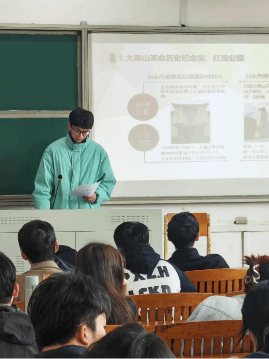 我院学生党员首先以小组为单位进行组内讨论和交流,尔后选出代表汇报利用寒假时间挖掘家乡的红色印记、红色人物、红色故事等情况,通过PPT、小视频、发言稿等多种多样的形式展示工作成果,让带领全体学生党员感悟各地的红色印记、红色人物、红色故事。最后,学生第一党支部书记李远文同志和学生第二党支部书记王锦屏分别对每组分享的资料进行点评与总结,肯定了本次主题党日活动开展的成效,希望全体学生党员以本次主题党日活动为契机,发挥自己专业的特色,坚持理论与实际相结合,将自己的发展与中华民族伟大复兴紧密结合。