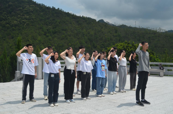 在九龙嶂红军纪念园,学生党员、发展对象和入党积极分子面向九龙嶂红军烈士纪念碑三鞠躬,敬献鲜花并瞻仰纪念碑,深深缅怀革命先烈。尔后,全体学生党员举起右拳,面向鲜红的党旗,在学生支部书记李远文的领誓下,用铿锵有力的声音面重温了入党誓词。学生支部书记李远文向全体学生党员强调:重温入党誓词,就是让我们不忘初心、牢记使命,恪守自己对党的庄严承诺;无论在顺境还是逆境,我们都要按照入党誓词,对照检查自己是否始终保持着共产党员的先进性,永葆共产党员的本色。最后,学生党员、发展对象和入党积极分子实地参观了东江工农红军总指挥部——星拱楼。