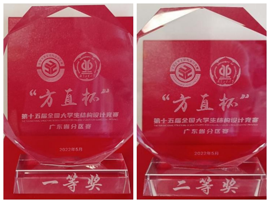 学生组队参加第十五届全国大学生结构设计竞赛广东赛区获得一等奖和二等奖