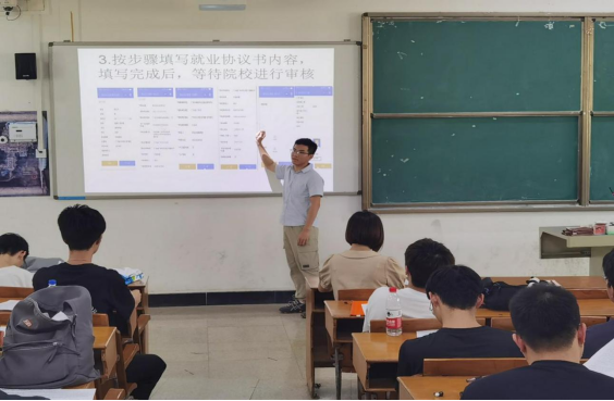 负责学院2023届毕业生就业工作的李锦泉老师,向2024届毕业生详细讲解了毕业生登记表和就业推荐表的填写注意事项、“广东大学生就业创业”小程序的登记及填报流程和与企业签订劳动合同的相关细则等就业要求和政策。负责学院2024届毕业生工作的王锦屏老师,向2024届全体毕业生提出了三点希望:一是希望大家适度提高就业的紧迫感,打开从毕业到就业的通道,外在就业环境固然重要,充分发挥个人就业主观能动性则更为重要;二是希望大家明白顺利就业的基础前提是顺利毕业,要高度重视自己的学业情况,全勤到课、认真听课,顺利完成本科学业,达到毕业要求;三是希望大家先就业再择业,明白职业愿景需要适配就业大环境,拥有良好发展前景的工作岗位远比略高的薪资待遇更为重要。