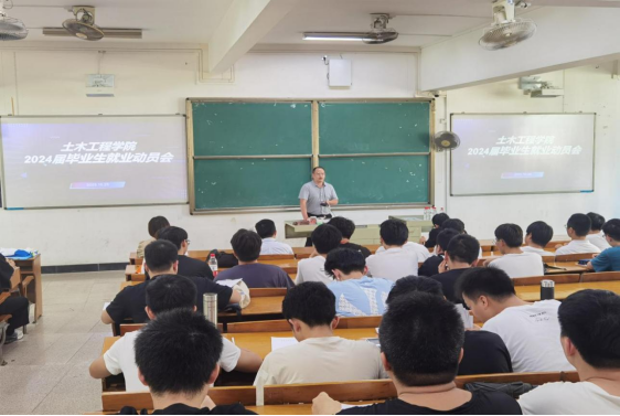 为进一步做好2024届毕业生就业工作,帮助毕业生全面了解就业形势,熟悉就业政策,并提升就业能力,近日,土木工程学院对2024届毕业生进行分专业召开就业动员大会,学院党政领导班子、全体辅导员、毕业生班班主任及2024届全体毕业生均参加了会议。