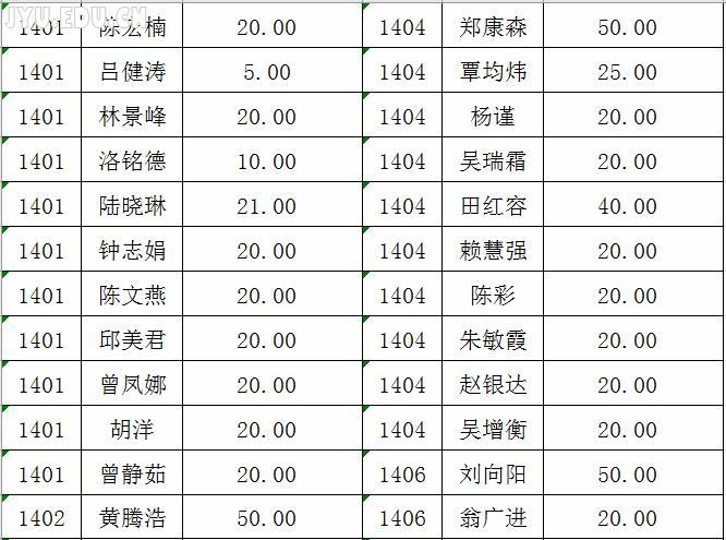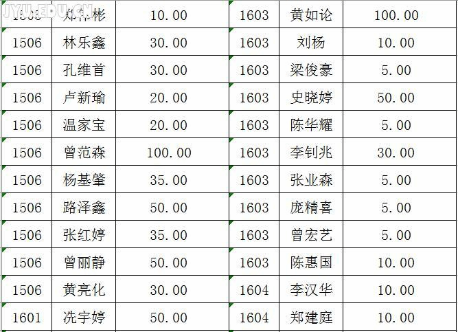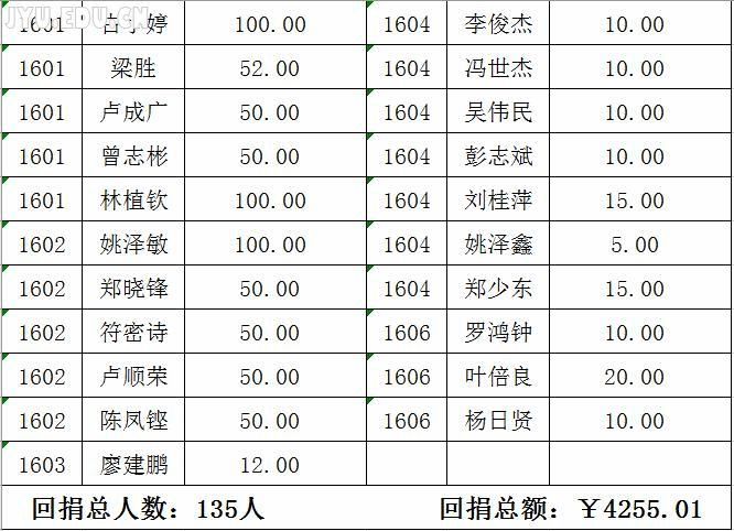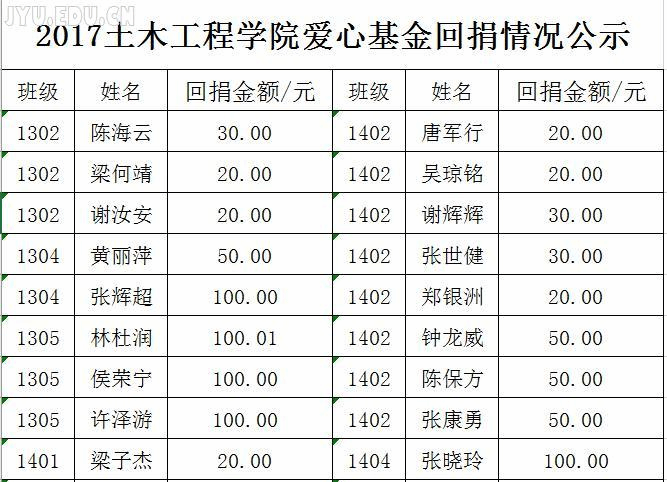 2017土木工程学院爱心基金回捐情况公示