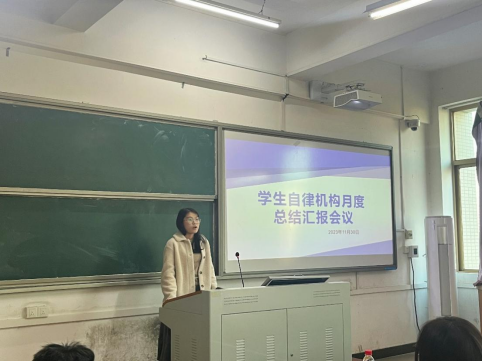 会上,自律机构的基础学风、就业服务、评奖评优和勤工助学四支队伍骨干分别对本学期以来的工作情况进行了总结,如基础学风小组对本学期学生的早读、晚修和上课考勤以及宿舍检查等情况做了详细的汇报;评奖评优小组对综合素质测评、国家奖学金和叶剑英奖学金的评审、违纪处分等情况进行了汇报;就业服务小组对毕业生信息整理、毕业生推荐表填写和职业规划大赛等情况进行了汇报;勤工助学小组对生源地贷款、绿色通道、家庭经济困难认定、国家助学金评审以及勤工俭学岗位管理等情况进行了汇报。期间,骨干之间还分享了工作经验,纷纷表示在工作中积累了工作经验、收获了美好的友谊,并提出了工作建议。