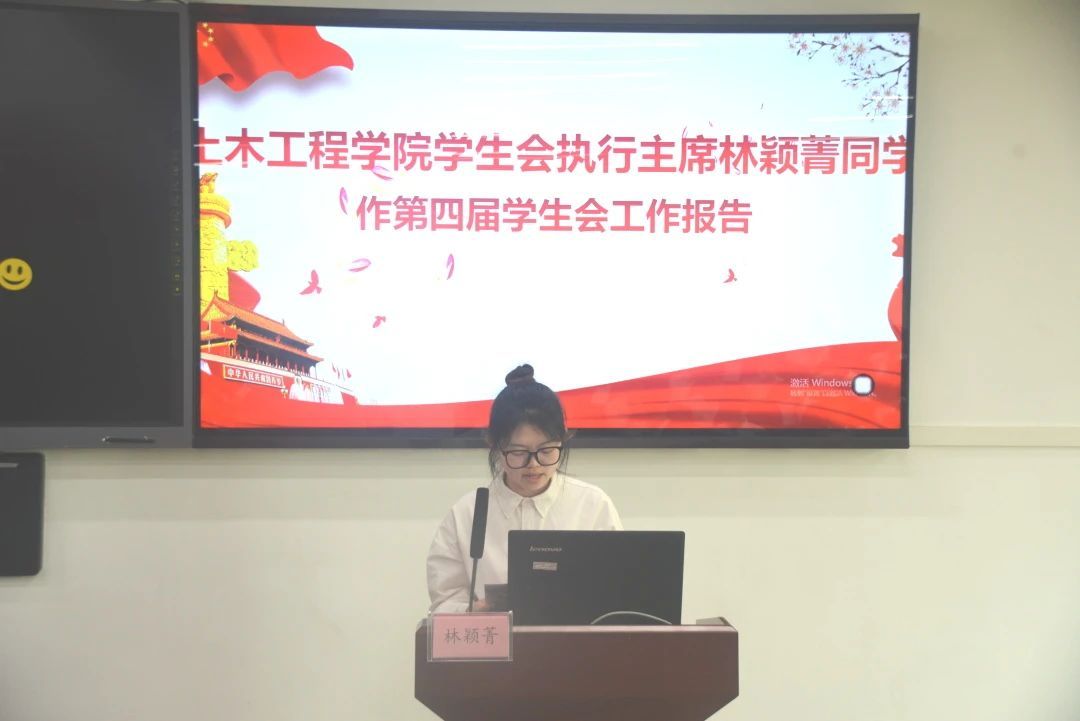 第四届团委学生第一副书记张恒杰同学、学生会执行主席林颖菁同学及易班工作分站站长钟侨根同学作第四届团委学生会及易班工作报告。