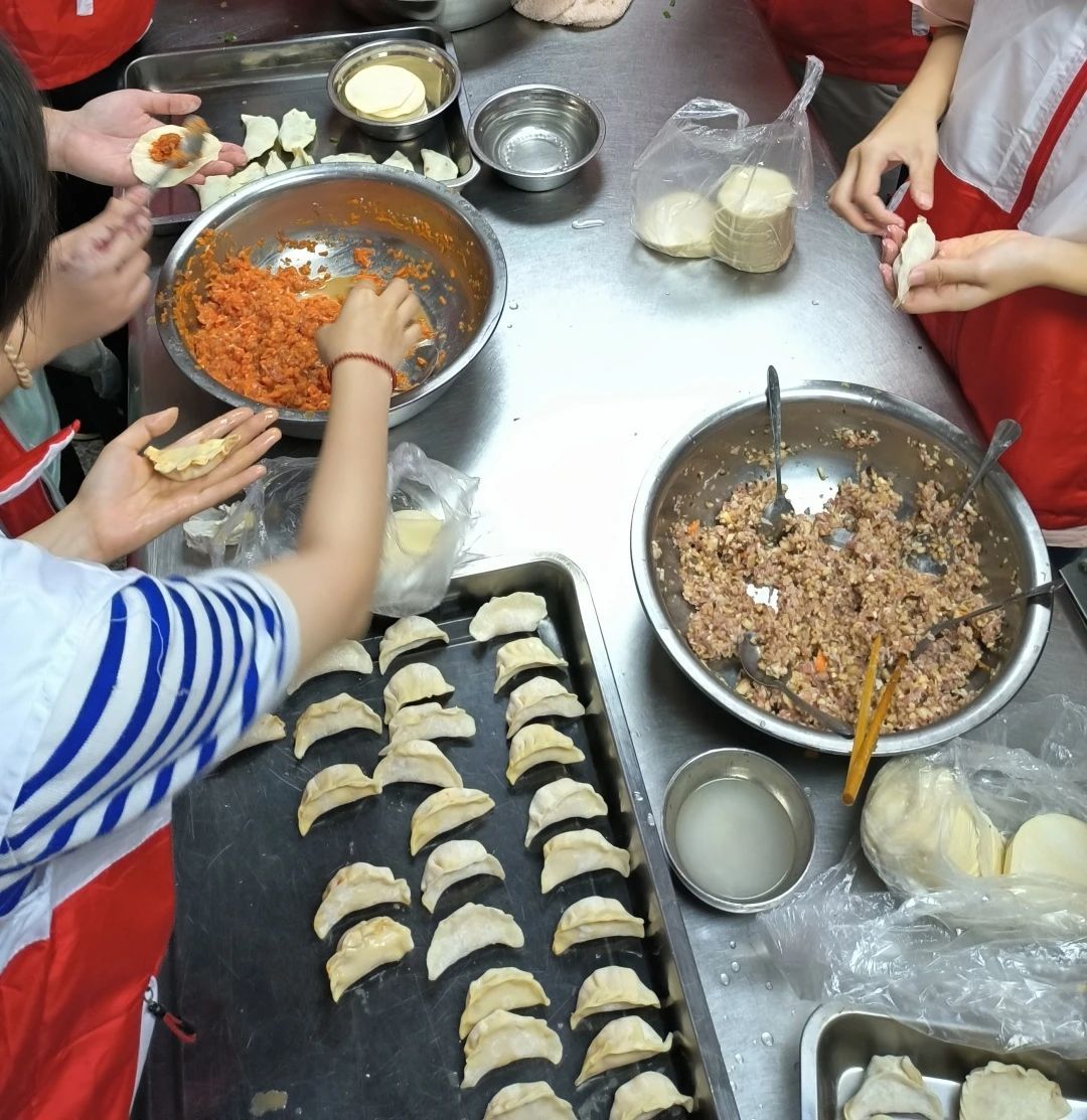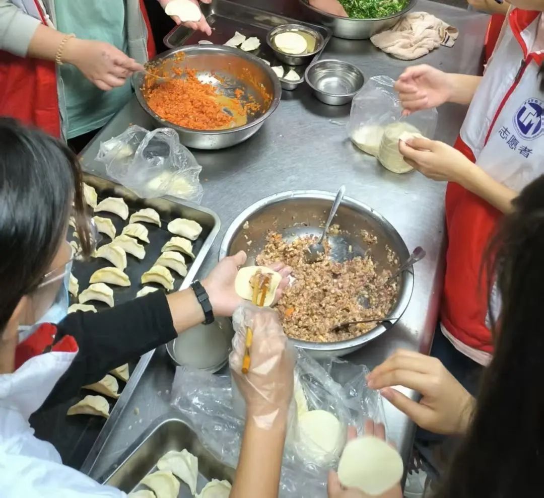 在活动期间,志愿者们撸起袖子,围在餐桌前包饺子,一个个饱满的饺子在手中成型,就像把“关怀”揉进面皮里、将“温情”包入馅料。