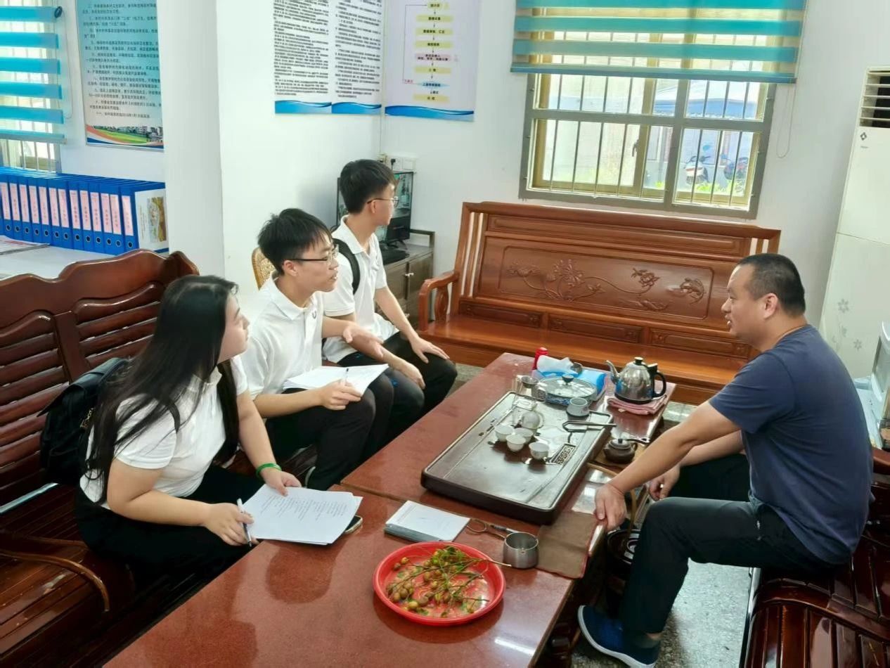 筑梦乡影突击队队员对双湖村村书记冯源丰等领导干部进行访谈。冯书记详细介绍了双湖村的历史渊源、人口构成以及发展现状,为突击队后续调研提供了重要背景信息。
