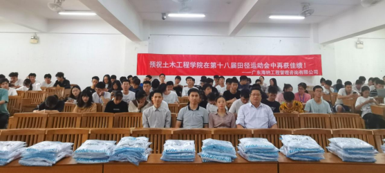 广东海纳工程管理咨询有限公司(梅州公司)总经理谢千津校友积极关心母校工作,在听闻土木学院师弟师妹准备组队参加学校第十八届田径运动会之际,主动赞助学院校运动会队伍80套运动服,谢千津校友此举能更好展现我院学生积极向上、昂扬奋发的精神风貌,有利于我院学生“赛出青春、赛出荣誉”。