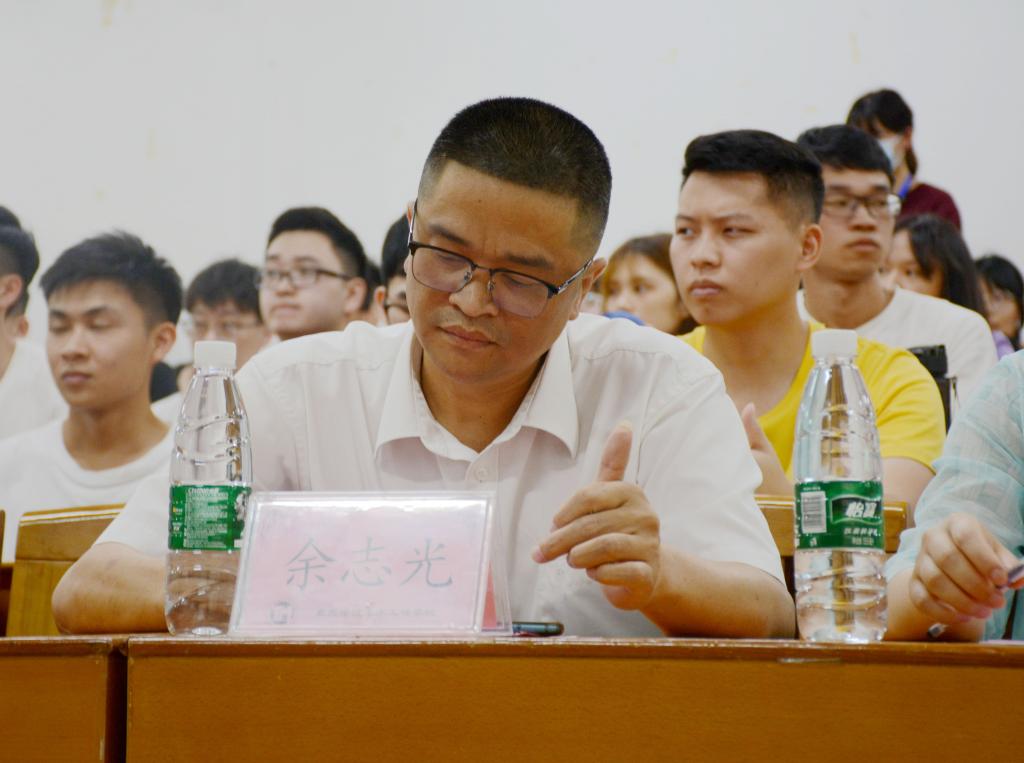 陈纪忠书记代表学院发言并鼓励现场准备考研的同学们要向师兄师姐学习,继续发扬土木学子的优良学风,积极备考,早日成功。董作荣院长宣读了余志光考研奖学金表彰文件。