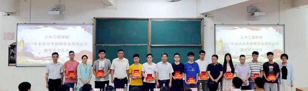 5月19日下午,我院在公颜实训大楼B502室召开2021年余志光考研奖学金颁奖仪式暨考研交流会,嘉应学院副校长廖志成、土木工程学院梅州校友会副会长余志光、会长杨智、副会长张红梅、秘书长林凯、土木工程学院党委书记陈纪忠、执行院长董作荣、党委副书记张敏、21位2021届考研上榜学生以及100多位土木学子参加了本次会议。