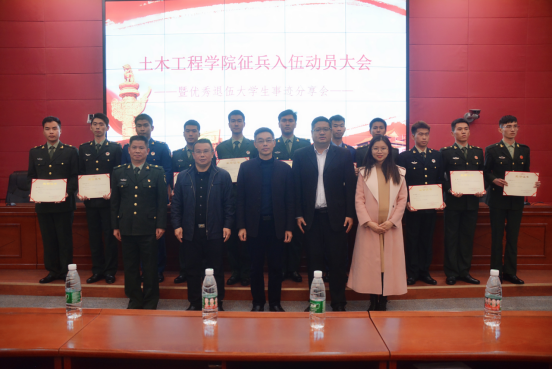 为营造良好的“参军光荣”的舆论氛围、开展征兵政策宣传工作,鼓励我院在校大学生积极应征入伍,土木工程学院于2021年12月3日在百年纪念大楼121室举办征兵入伍动员大会暨优秀退伍大学生事迹分享会,保卫处副处长徐学奏、政保军事科(征兵工作站)科长蒋绍红、土木工程学院党委书记陈纪忠、党委副书记张敏、学工办主任李丽敏、辅导员、优秀退伍大学生及学生代表共280人参加了此次大会。