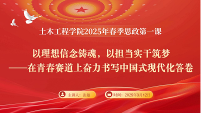 我院于2025年3月12日在公颜实训大楼C508教室举行土木工程学院书记“思政第一课”,学院党委副书记张敏作主题讲座,我院团学干部近100人参加。