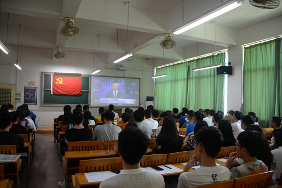 大会上,毕业生党员戴党员徽章、面向党旗,在张敏副书记的带领下,庄严地举起右手,握紧拳头,共同重温了入党誓词。随后,全体师生党员共同学习了习近平总书记视察清华大学重要讲话精神。