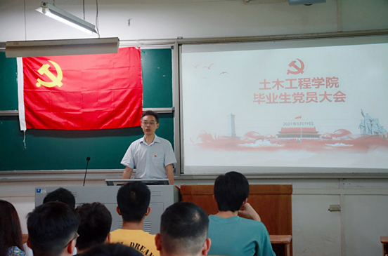 为加强毕业生党员的党性教育,鼓励毕业生党员继续发挥先锋模范作用,5月19日下午,土木工程学院在公颜实训大楼C506教室召开2021届毕业生党员大会。学院党委书记陈纪忠、党委副书记张敏、学生党支部书记李丽敏以及2021届毕业生党员40余人参加了会议。
