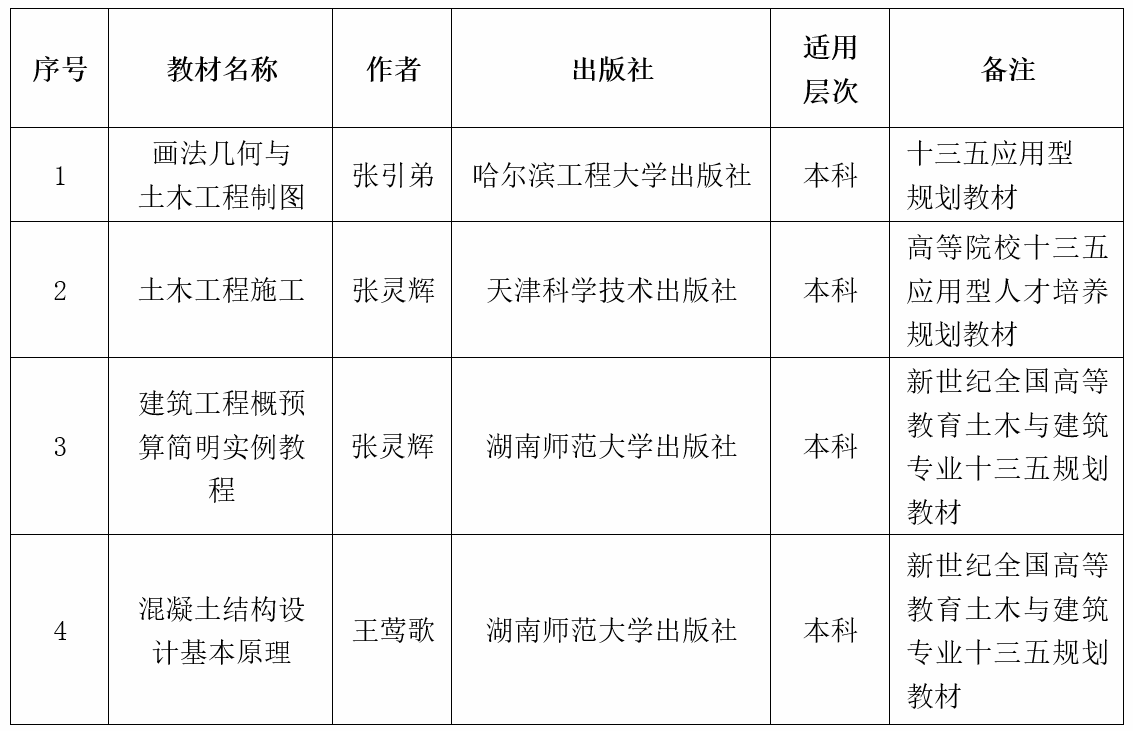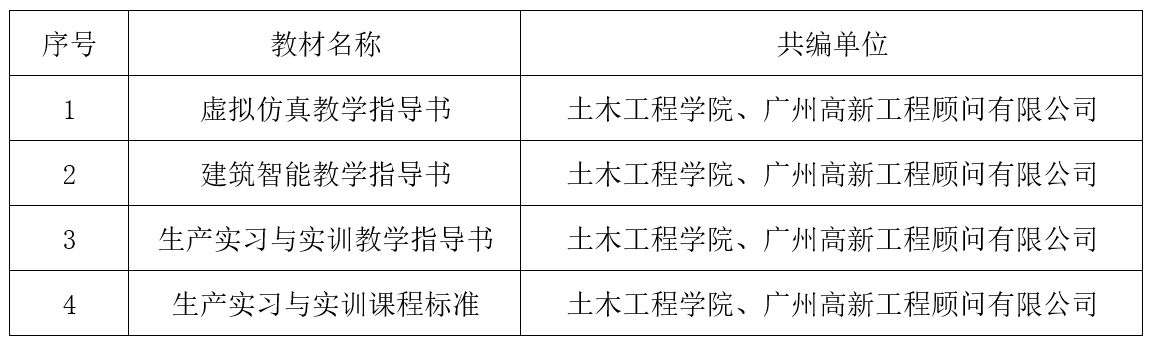 校企合作或许是最佳选择之一,因为高校有基础理论和教学资源,企业有丰富的应用场景和技术实践,发挥校企合作的优势编写教材,将有助于构筑产教融合的人才培养体系,培养高质量的土木工程专业人才。依托广州高新工程顾问有限公司实习基地共编教材情况如下: